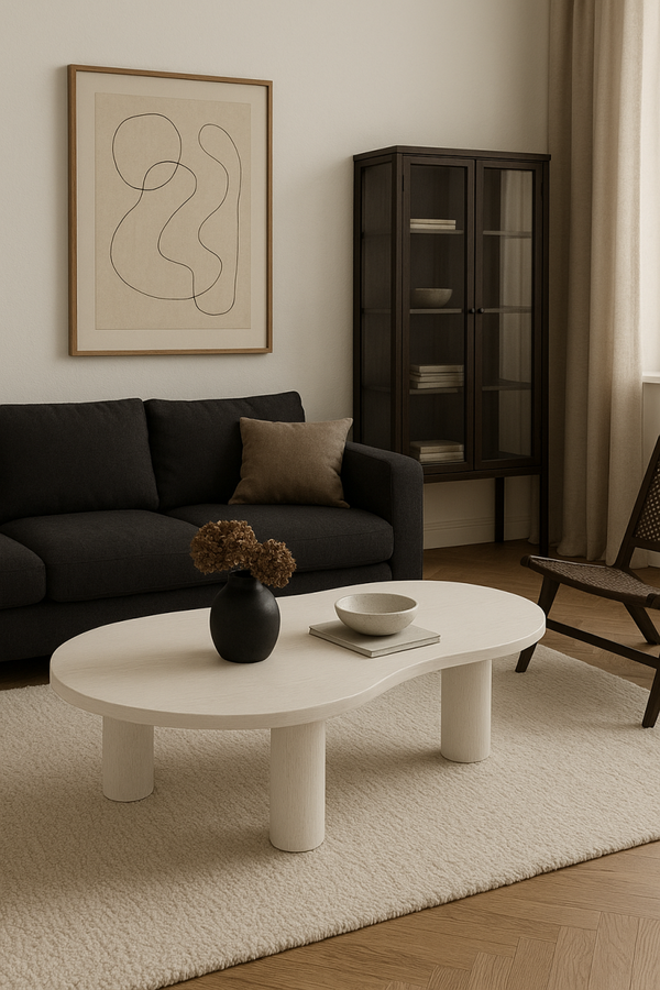 Table basse "Ondine" – inspirée par sa forme organique fluide qui rappelle le mouvement des vagues.